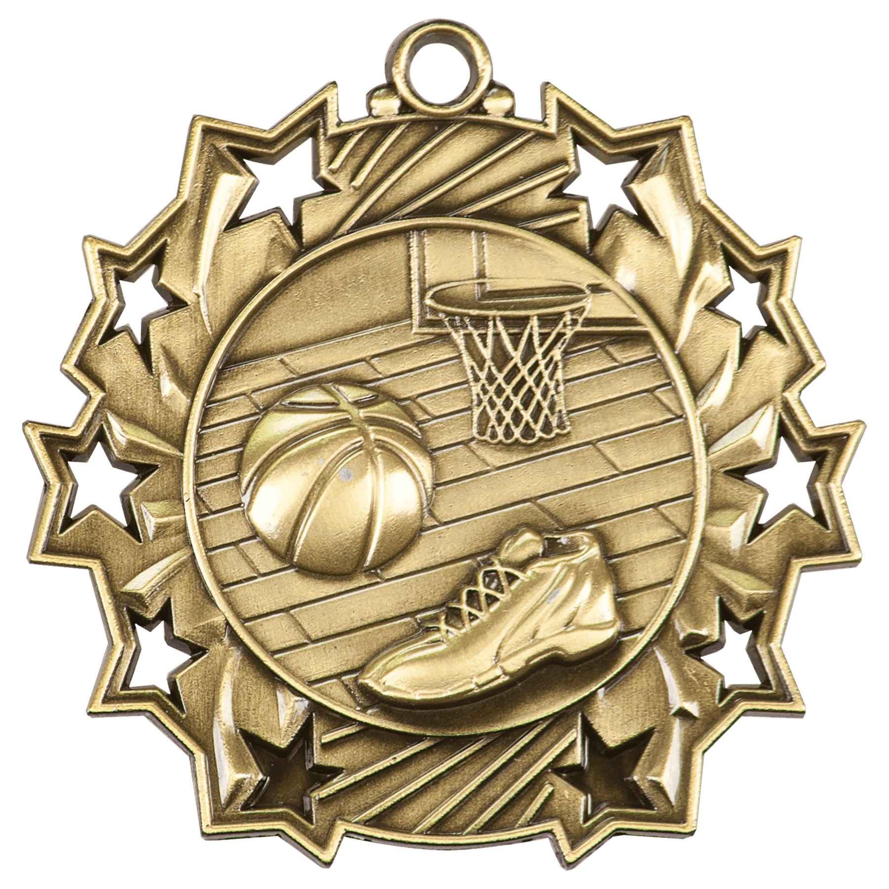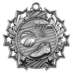 2 1/4" Basketball Star Medal with red, white and blue lanyard